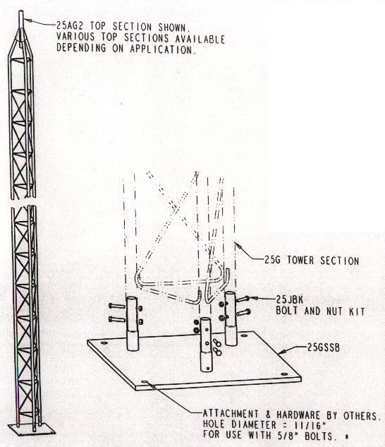 This is recommended for no more than 2 sections depending on the load. 25G steel is fairly light and was designed for guyed towers so I'm recommending that you do not use this base plate for any type of heavy load.